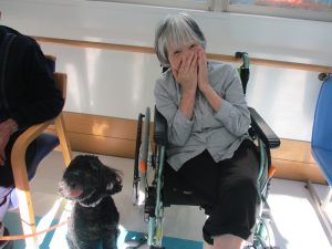お待ちかねのワンちゃんたちに会えて、利用者さんは嬉しそうです。